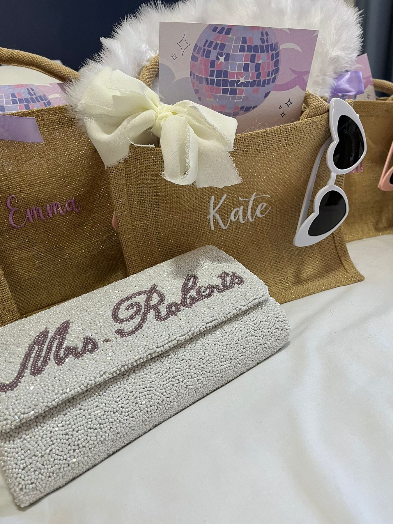 Personalised Embroidered Jute Bags – Perfect for Hen Parties & Bridesmaid Gifts